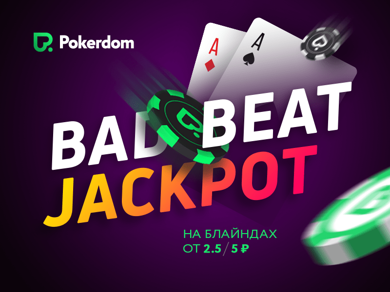 В покер руме PokerDom разработана целая система поощрения игроков, которые столкнулись с таким неприятным явлением как бэд бит. Ему посвящены две акции Bad Beat Jackpot, которые рассчитаны на игроков микро-лимитов и на покеристов, играющих за более дорогими столами Техасского Холдема и Омахи.